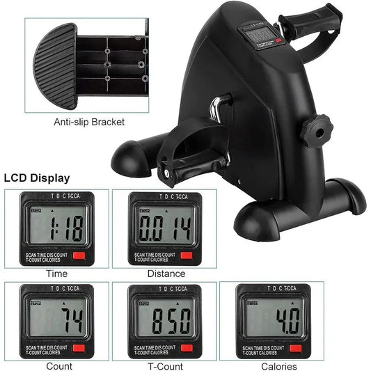 Mini Exercise Bike, Under Desk Bike Pedal Exerciser Portable Foot Cycle Arm & Leg Peddler Machine with LCD Screen Displays