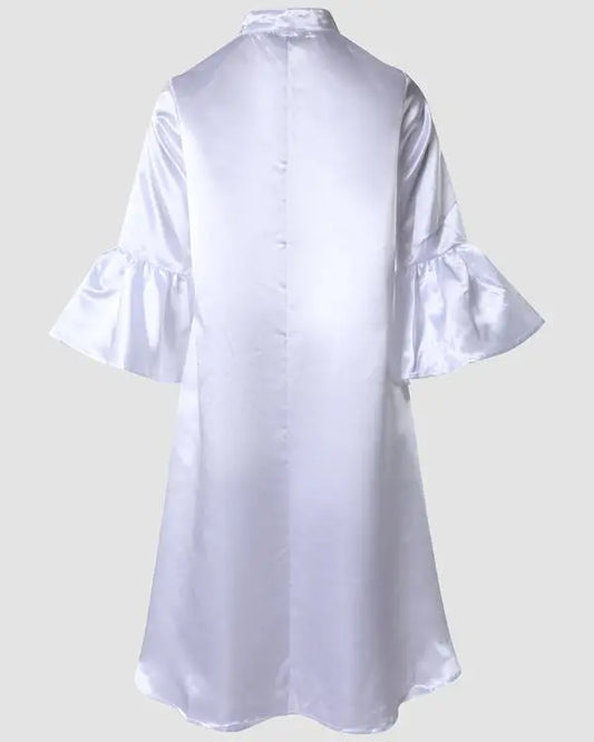Black Button Front Fitted Puff Sleeve Skater Dress