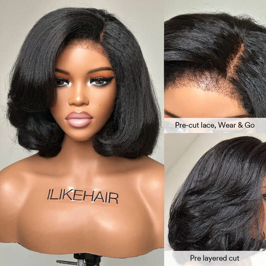 Put on & Go Side Part Short Layered Bob Kinky Edges Wig