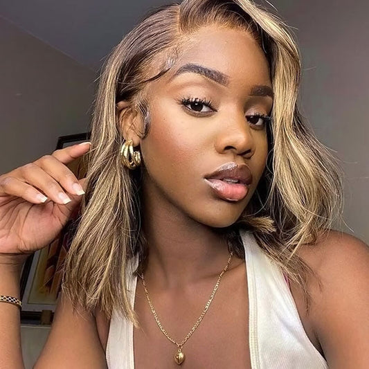 Straight Bob Wigs Highlight Brown Short Bob Wigs Glueless Human Hair Wigs P4/27 No Glue