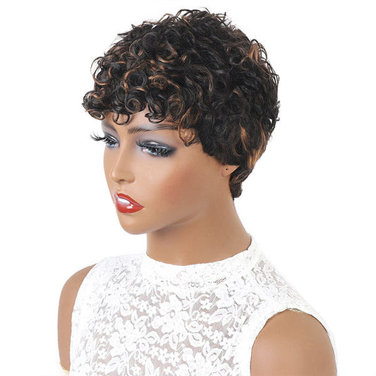 Short Curly Bob Wigs No Lace Wigs Ombre Color Human Hair Wigs