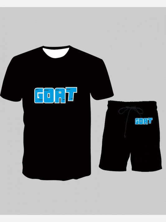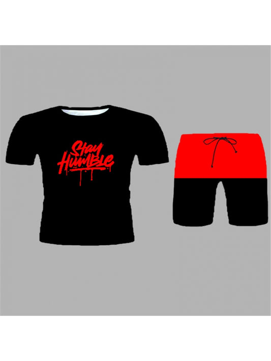 Casual Contrast Color Letter Printed Tee And Short Pants Sets
