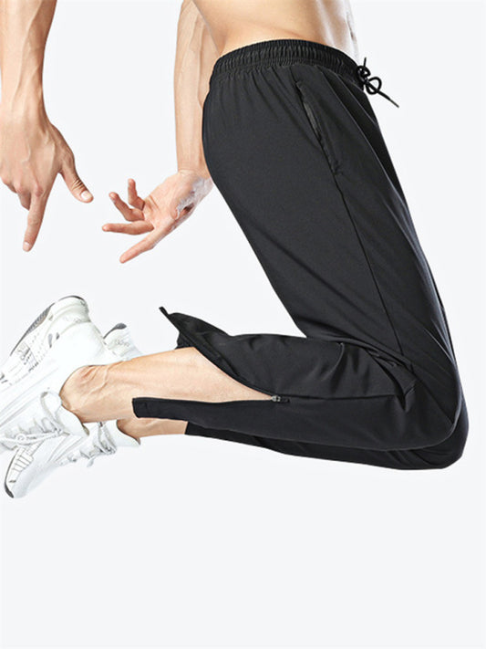 Ice silk quick-drying breathable fitness drawstring casual side zipper trousers