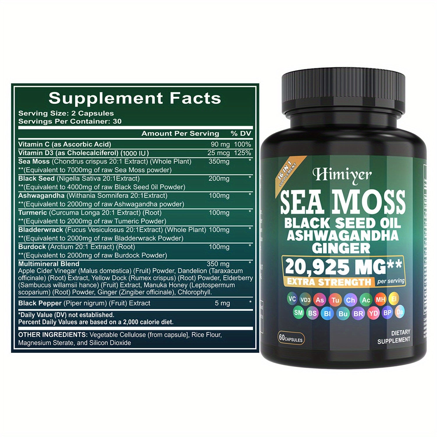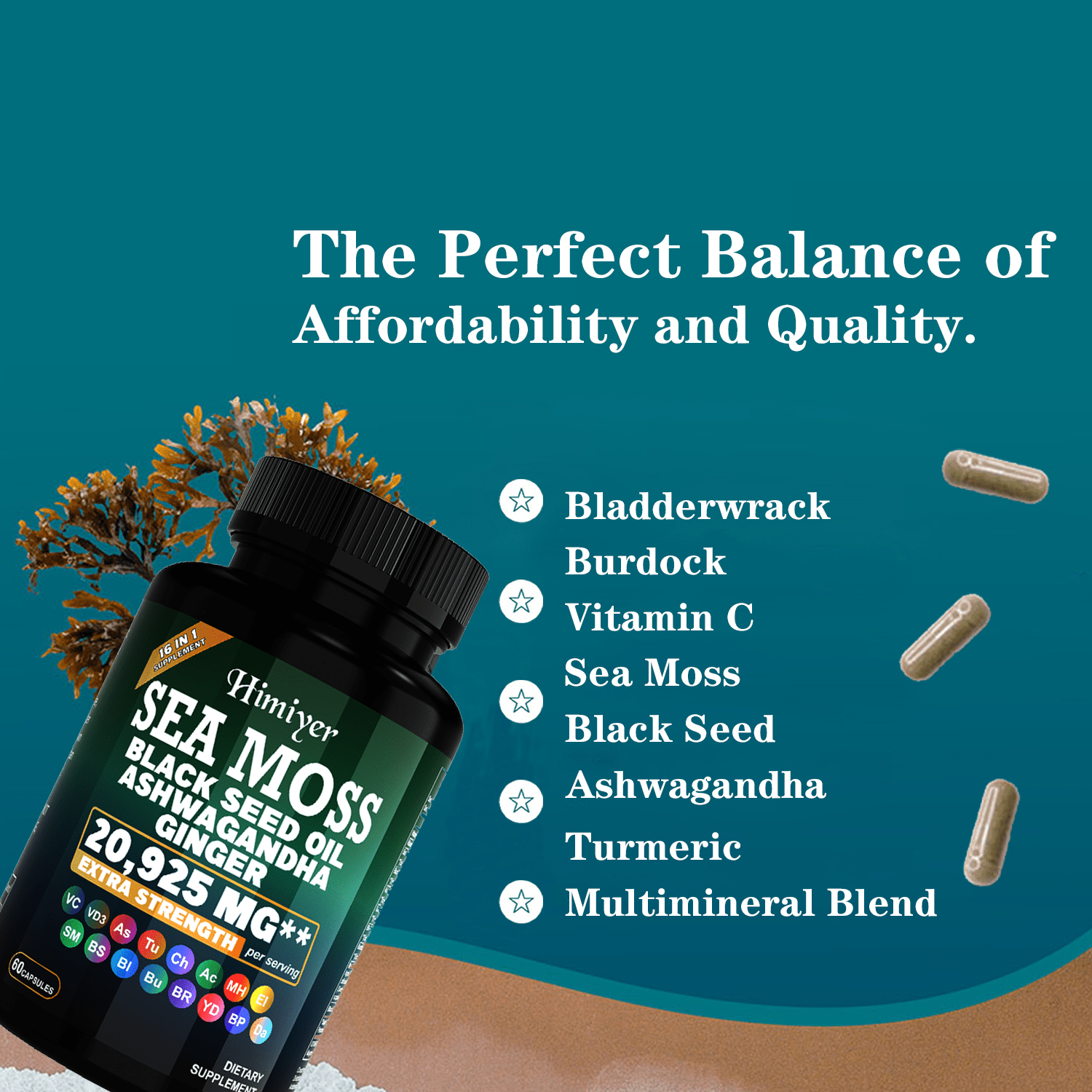 Sea Moss Capsules with Black Seed Oil, Ashwagandha & Turmeric