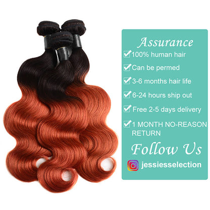 T1B/350 Ombre Ginger Body Wave Hair 3 Bundles With Closure Human Hair With Dark Roots