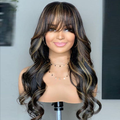 Honey Highlight Body Wave 13x5 Pre Everything Human Hair Wigs With Bangs