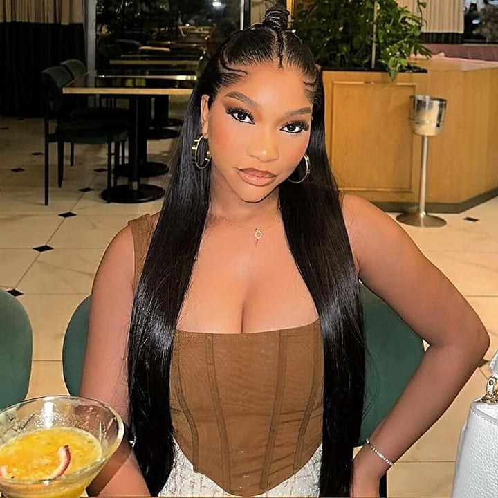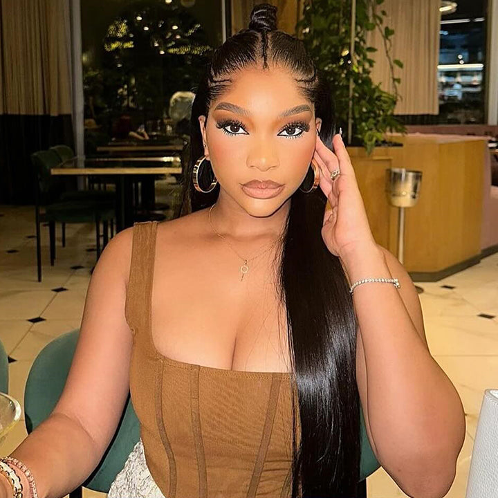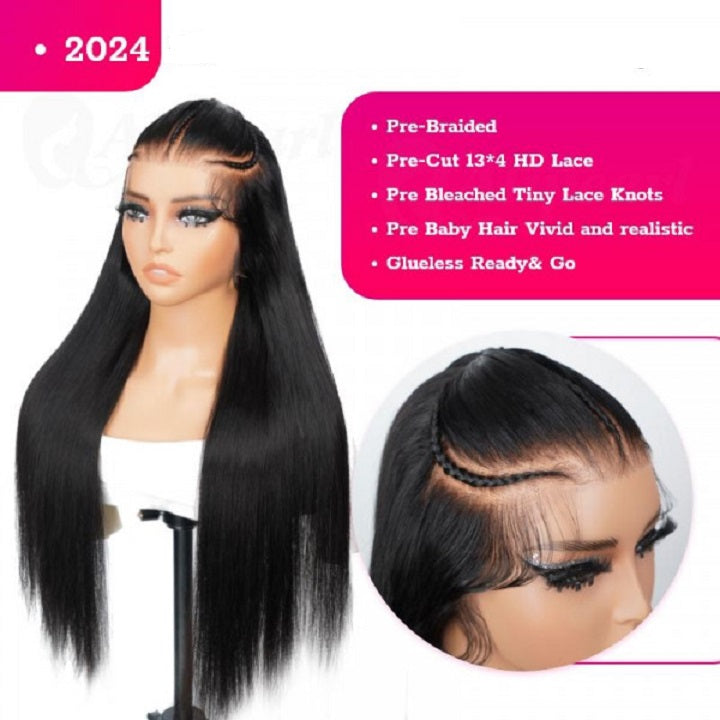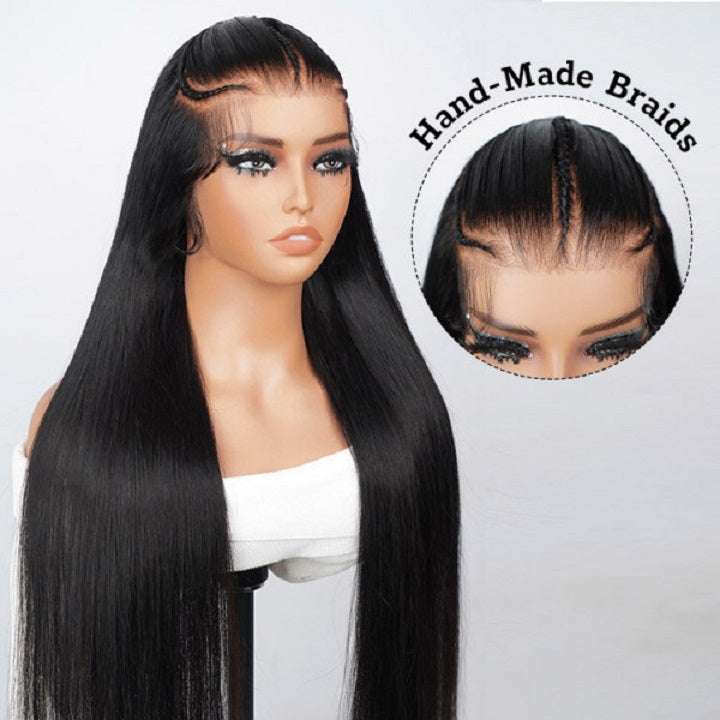 Straight Pre Braided Wig 13x4 Pre Cut Lace Human Hair Wigs With Baby Hair
